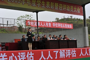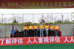表彰暨迎评动员大会上,来自中文系学生谢杰平代表受到表彰和全院近万名同学铿锵有力地发了言,并在大会上做出了庄严的宣誓,表示一定要与学院同呼吸、共命运,齐心协力,攻克时艰,举全力圆满完成学士学位授予权迎评工作。