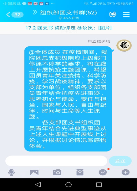 为充分利用“疫情”教材做好青年大学生思想政治工作,马克思主义学院/政法学院自2月15日以来,以微信群和qq群为载体,组织团员青年开展“你我共同战疫、凝聚青春力量 ”线上主题团课,引领青年学生成长成才。