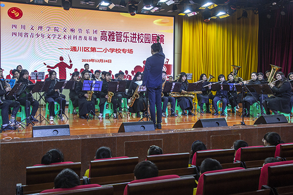 12月18日至25日,由四川省青少年文学艺术社科普及基地携手四川文理学院交响管乐团主办的“高雅管乐进校园”活动先后走进达州市多所中小学,为数千名师生奉献了一场场精彩的高雅管乐享受。