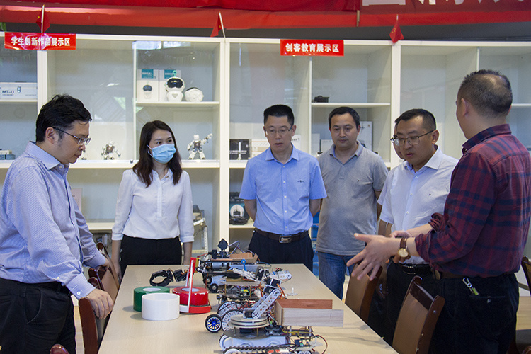 开江中学校长符纯兵参观了智能制造学院创新创业孵化中心,查看了慧鱼机器人展示区、反恐排爆机器人展示区、创客空间作品展示区、无人机展示区、加工制作区等,听取了智能制造学院关于创新创业人才培养的情况介绍,充分肯定了学院在人才培养方面的创新举措,同时就两校创新型人才培养经验作交流。