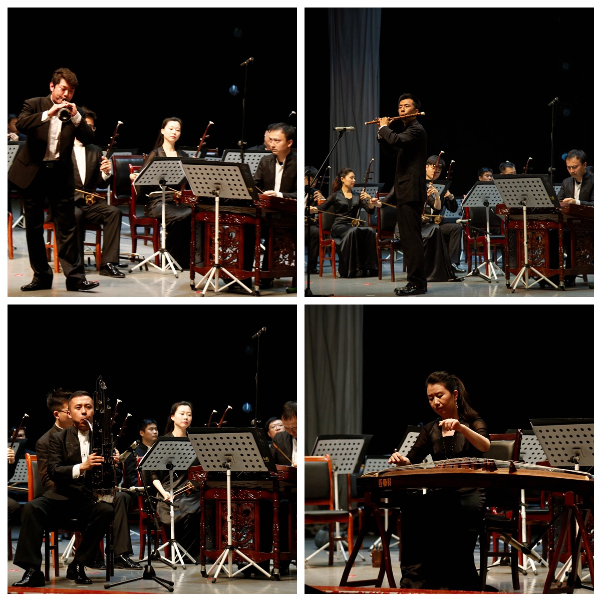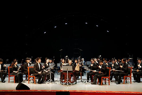 音乐会在热情欢快的合奏《瑶族舞曲》中拉开帷幕,中央民族乐团的演奏家们以二胡齐奏、笛子独奏、琵琶独奏、中阮独奏、唢呐独奏等形式演奏了十余个国内外经典曲目,倾情奉献了一场高雅艺术,既有华风国韵的本土民乐,像忧伤深邃、民间风味浓郁的二胡独奏《二泉映月》,赞美牧民策马的草原风光和蓬勃向上的生活热情的欢快笛子独奏《牧民新歌》,也有以中国本土乐器演绎外国风情的曲目,像别具风味的笙独奏《西班牙斗牛曲》,还有中西合璧的二胡、大提琴与乐队齐奏的《菊花台》,最后的大轴则是中央民族乐团的品牌剧目《丝绸之路》,民族管弦乐齐奏丝路乐章,磅礴大气,震撼人心,演奏家们的精湛技艺赢得全场观众起立鼓掌。