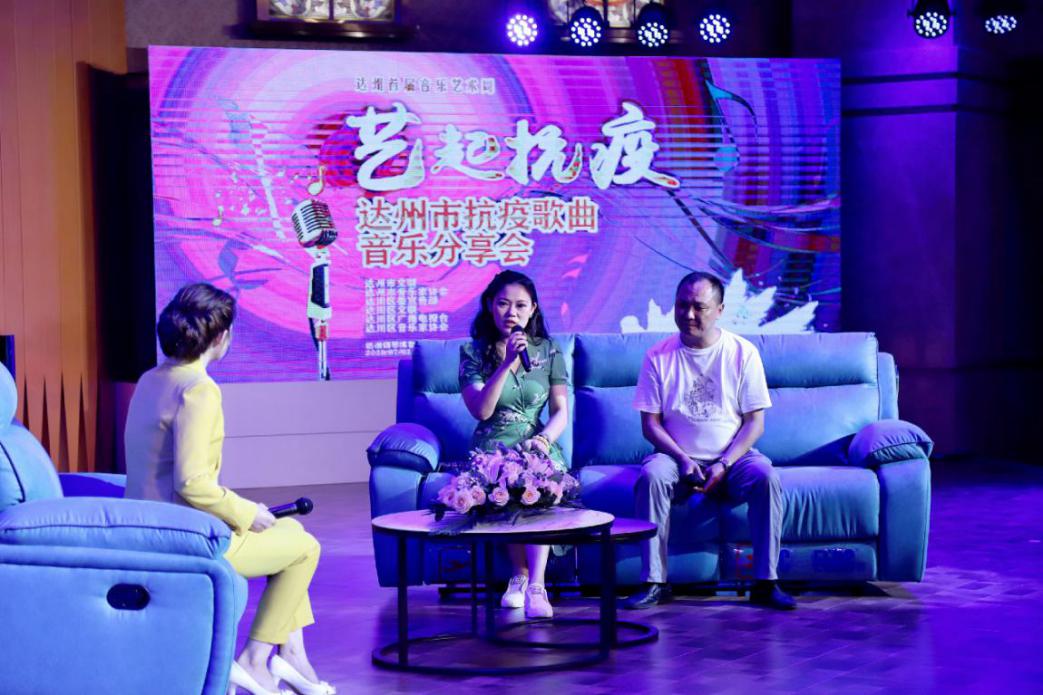 活动现场,大家欣赏了达州音乐界在疫情期间创作演唱的《为你守平安》《爱的力量没有距离》《红手印》《为你点赞》等“助力战疫”公益歌曲。民革四川文理学院支部主委李玥欣作为受邀代表之一接受访谈,李玥欣与在场观众们共同分享了自己在抗疫期间文艺创作历程,讲述了作为一名民革党员利用自身专业优势,围绕抗击疫情这一主题,以创作优秀文艺作品出发,并倾情演唱《红手印》《为你守平安》等歌曲鼓气加油,积极助力抗疫的点滴感人行动,其作品先后在学习强国中宣部平台、中央广电总台国际在线、新华社客户端、光明日报、今日头条、四川新闻网、达州新闻网等媒体播出。