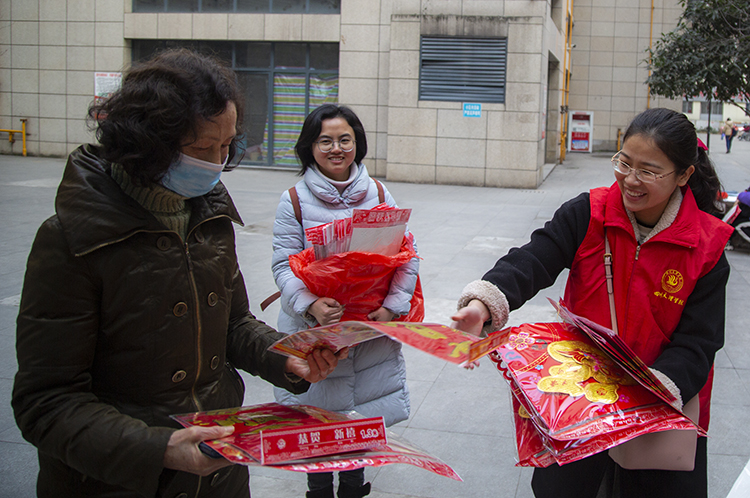 为营造欢乐祥和的节日气氛,让社区居民切身感受到中国传统文化的气息,1月15日,学校志愿者赴凉水井社区开展结对联创“喜迎新春 情暖社区”春节送春联活动。