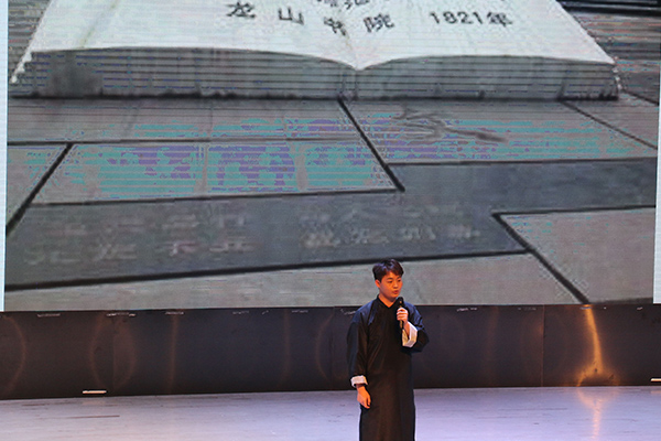 在他们充满深情的解说中,大家仿佛听到了龙山书院的琅琅书声,知晓了张爱萍、魏传统、杨超在达县中学堂的求学经历,认识了自力更生开创基业的“八大金刚”,见识了“破茧化蝶,浴火重生”的巴山作家群,仰止91岁高龄书写《新校区赋》堪称德艺双馨的章继肃老先生,憧憬学校升本后召开的第一次党代会制定的“三步走”发展蓝图。这些有温度有情怀有责任有担当的校史故事温暖了在场300余名观众,同时也凝聚了爱校荣校建校力量。