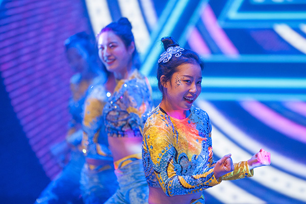文理学子多才俊,风流酝藉喜迎新。在热烈欢快的音乐中,音乐与演艺学院同学用热烈的舞蹈《起舞迎新》拉开了晚会的帷幕。舞蹈《心有翎兮》将国粹京剧与舞蹈完美结合,利用音乐与灯光相结合的快慢效果,为我们展示了时而欢快灵动、时而沉稳舒缓的京剧世界。由四个学院共同合作的朗诵《春潮拍岸千帆进》用激昂的歌声辅以娓娓道来的故事,将中国改革开放四十周年来谱写的壮丽史诗生动的展现在我们眼前,其传达出的时代的召唤使在场的观众心潮澎湃。流行歌舞《飘向北方》在闪烁的光影中,唱出了每一个成功的人身后那拼搏的心酸苦楚与向着前方前行的坚定的信念。