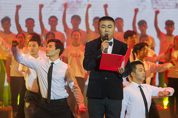 “巴山南,洲河旁。艰难困苦创学堂,玉汝于成筑梦想……”第二篇章以歌舞形式展开,《凤凰欲飞》将悠扬的校歌与华美绚烂的舞蹈相结合,唱出了“博文大理,厚德笃行”的文理校训,舞出了“凤凰欲飞,扶摇直上”的文理发展史。体育学院的健美操《喜娃娃》利用了闪烁的灯光和欢快的歌声,将体育学院特色的健美操完美呈现,同时也展现了新时代大学生的青春活力。文学与传播学院师生带来的相声《如此师徒》结合全国各地的地方方言,通过相声幽默诙谐的表现方式,将全场观众逗的哈哈大笑,现场氛围到达了一定高度。美术学院同学的服装秀《追梦者》通过男女模特的不同服饰,表现了现代与古典、简约与时尚相结合的艺术理解,更是在结尾将国画书法与艺术相结合,对古代的艺术进行了继承创新与实践,全场气氛到达了高潮。