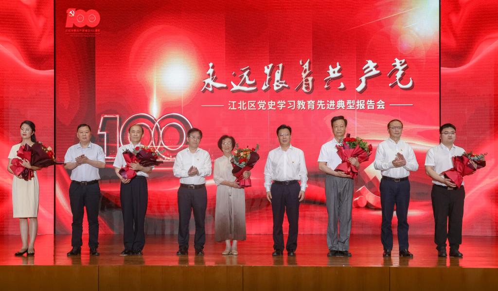 重庆市党史学习教育领导小组办公室副主任、重庆市委宣传部副部长曾维伦,江北区委副书记、区长陶世祥、江北区人大常委会主任刘渝平、江北区政协主席刘汉华、江北区委理论学习中心组成员出席宣讲会。