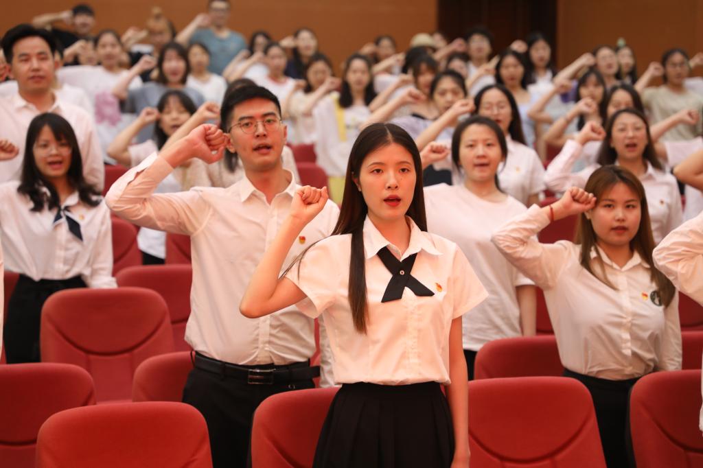 二级学院党总支副书记、学工办主任、全体辅导员及在校230多名2021届毕业生党员参加教育活动。