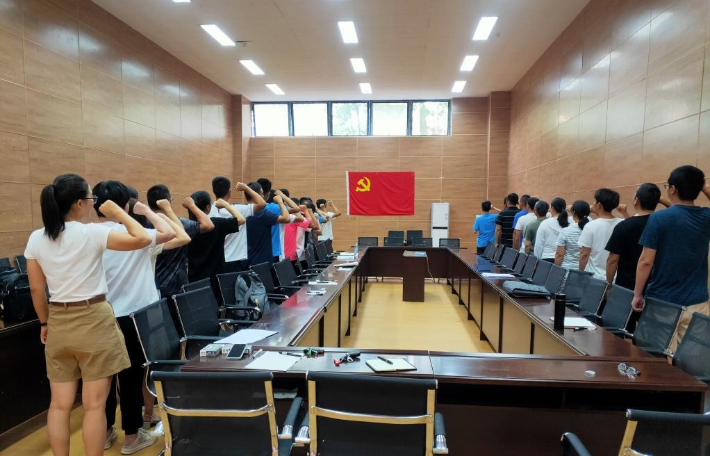 活动结束,全体党员面对党旗重温了入党誓词。