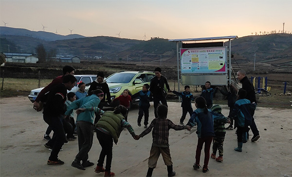 接到四川文理学院的帮扶物资,彝族同胞非常感动。特别是老年人,由于子女长期不在身边,生活孤独,拉着工作人员的手连说“卡莎莎”(彝语,意为“谢谢”)。小孩们则拉着工作人员的手跳起了达踢舞,表达了他们的喜悦之情。