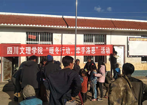 “白雪却嫌春色晚,故穿庭树作飞花”, 2019年3月12日,四川文理学院工会、武装保卫部(处)、后勤服务处联合组织的捐赠物资共计42箱衣物抵达凉山州布拖县乐安乡洛恩村,由第一书记拖觉史日、四治专员蒲江勇以及村书记吉克哈组、会计吉克子鬼在村活动室将所捐物质分类之后进行了发放。