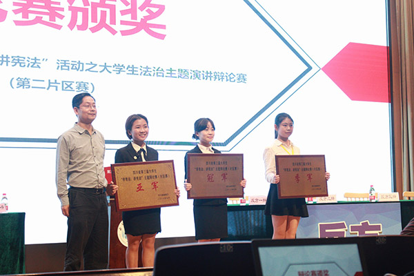 本次辩论赛是演讲比赛和辩论赛相结合的比赛。14日晚,队员苏璐作为辩论队的演讲选手上台演讲。苏璐同学发挥其优秀的专业特长和演讲技巧,荣获第二片区赛第四名。