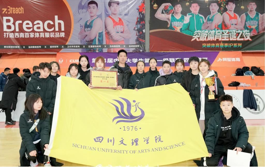 近日,由中国大学生体育协会、四川省教育厅主办,四川省大学生体育协会执行,四川师范大学承办的第24届CUBA中国大学生篮球一二级联赛(四川基层赛)女子组比赛在成都市突破篮球基地进行。全省22所高校24支女子篮球队分别参加一级甲组、一级乙组和二级比赛,我校女篮获一级联赛(四川赛区)女子组乙组冠军。