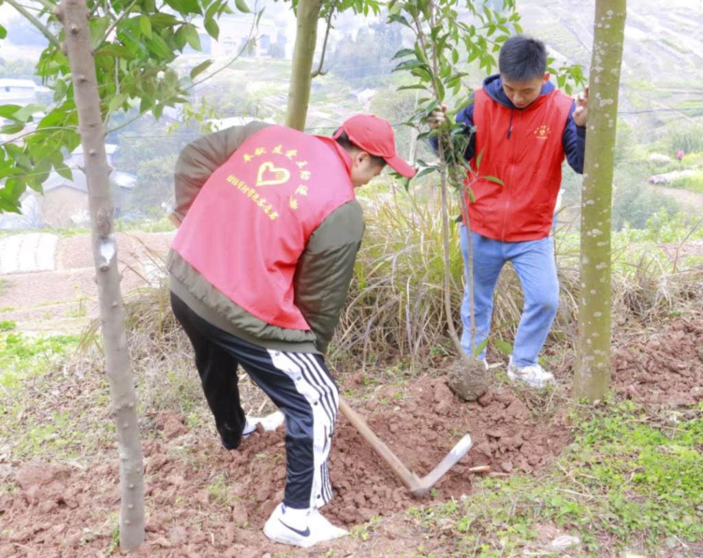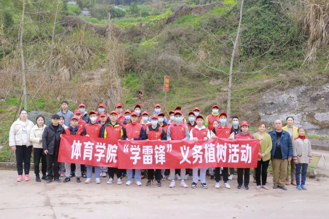 3月5日,时值学习雷锋纪念日,体育学院党总支副书记彭波、团总支书记祝利平、辅导员石姣娜和闫青带领32名志愿者到新酢坊社区李子树湾开展“学雷锋”义务植树志愿活动。