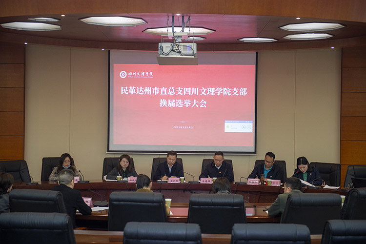 3月24日,民革四川文理学院支部换届选举大会在学校莲湖校区召开。达州市人大常委会副主任、民革达州市委主委王全兴,学校党委常委、统战部长涂德祥,民革达州市委副主委、学报编辑部主任加晓昕,民革达州市副主委、监委会主任、市直总支主委张银兵出席会议。大会选举了徐旭为支部主委,周明中、张兰为支部副主委。