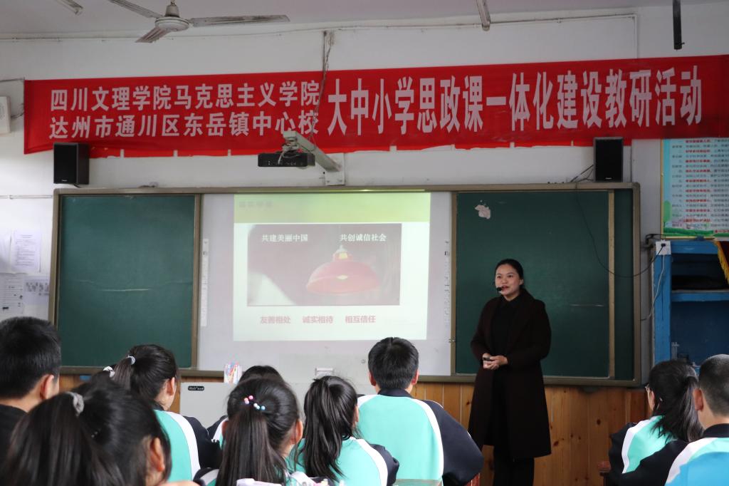 3月29日,党总支书记刘春辉、院长孙杰带队前往通川区东岳镇中心校开展大中小学思政课一体化建设教研活动,并在该校挂牌成立“四川文理学院马克思主义学院大中小学思政课一体化建设实践基地。”