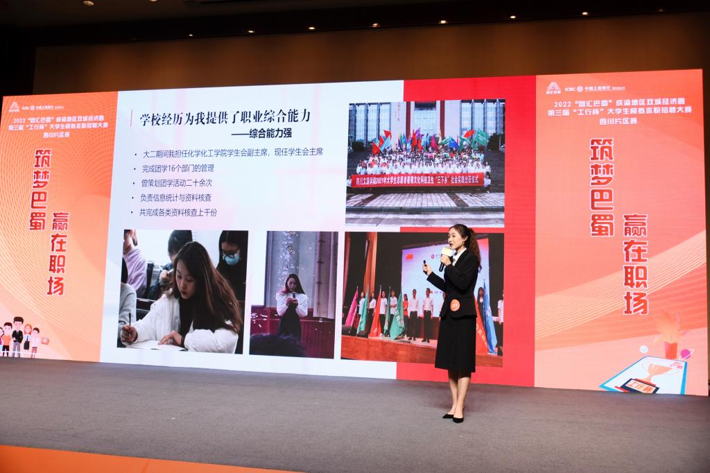 近日,“智汇巴蜀”成渝地区双城经济圈第三届大学生模拟求职招聘大赛圆满落幕。化学化工学院学生辛雨瑶获得全省20强、三等奖、最佳人气奖。