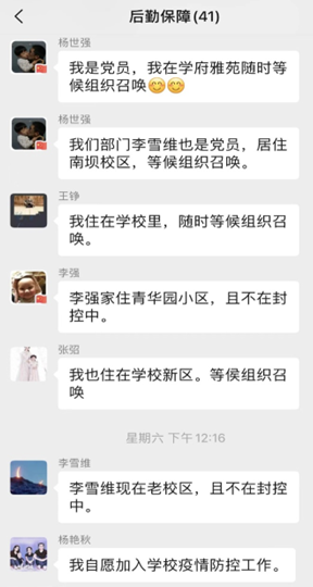后勤服务处在做好各项保障工作的同时,科室负责人和办公室工作人员积极响应学校党委号召,主动加入志愿者行列,为在校隔离学生提供送餐服务。
