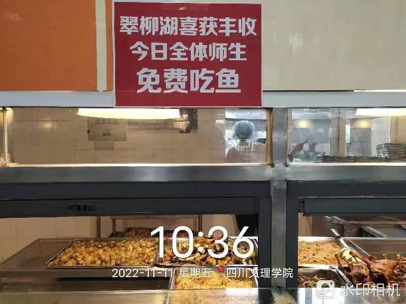 “翠柳湖喜获丰收,今日全体师生免费吃鱼”。11月11日,一条群消息受到了全校师生点赞称好。