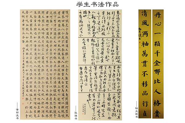美术学党总支副书记尹羿之说,“我们收到美术作品400多幅,从参展作者中分别选了40人作为书法美术作品的培养对象。这40个选手,最后只用了4人4件作品。但我们在大半年的备战过程中没有淘汰一位同学。”从400件到4件,从40人到4人,普及与提高相结合,既不放弃每一个人和每一件作品,同时又培养骨干,打造精品。