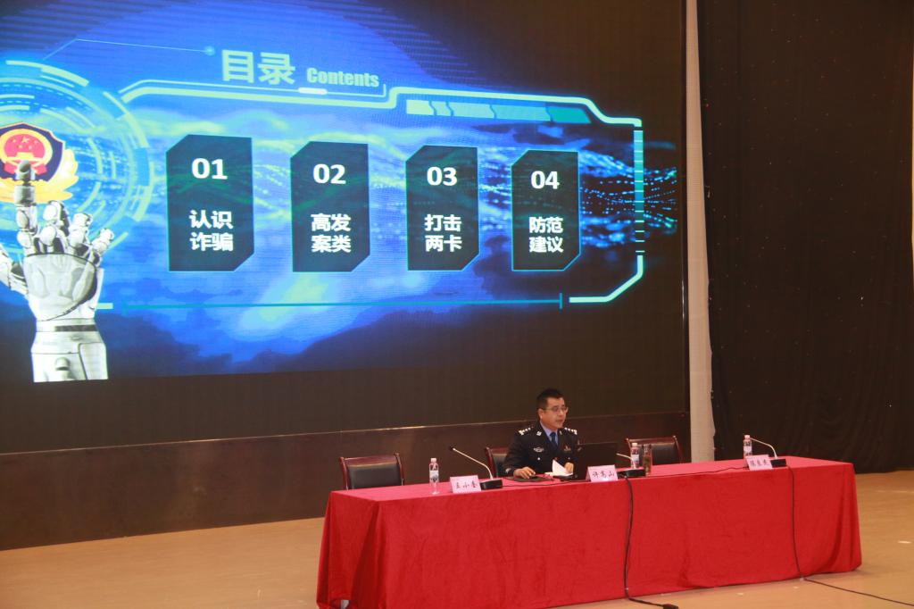 许高山为市联席办驻学校反诈专员颁发了聘书,并作“青春不欺、校园无诈”防范电信网络诈骗共创“无诈平安校园”专题讲座。许高山结合电信网络诈骗犯罪的典型案例,从认识诈骗、高发案类、断卡行动、防范建议4个板块,分析讲解了电信网络诈骗的概念、起源、特征、形势、类别、危害,并针对大学生的学习生活特点,从防范策略、被骗后的自救措施两个维度入手,深入浅出讲政策、普法律、谈规定、教方法,给广大师生上了一堂生动精彩的防诈反诈“理论课”和“实践课”。