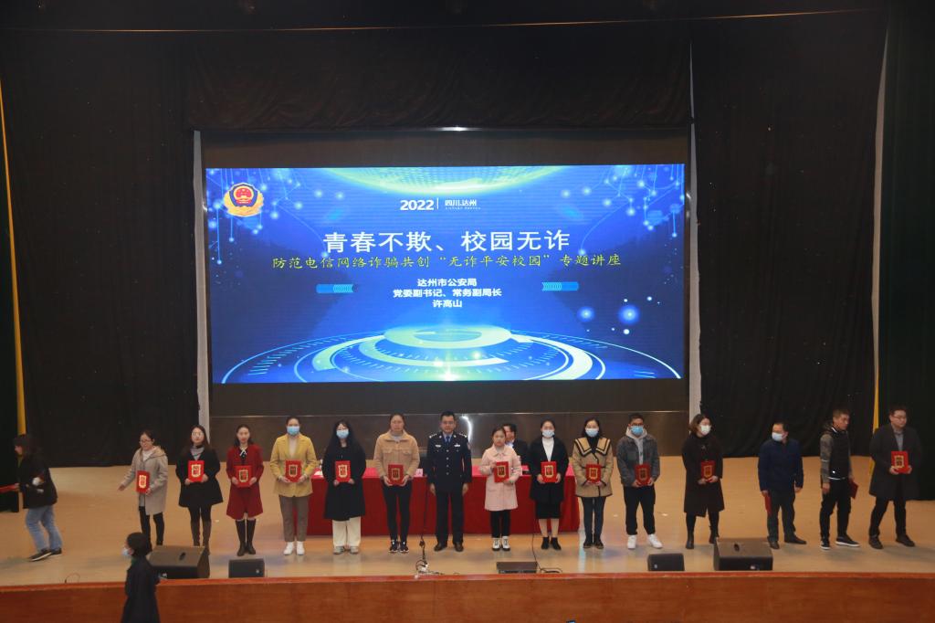 11月15日,“平安校园反诈中心”揭牌仪式在莲湖校区举行。此中心由达州市打击治理电信网络新型违法犯罪工作局际联席会议办公室与学校保卫处共建。副校长徐晓宗出席揭牌仪式。达州市公安局党委副书记、常务副局长许高山,学校武装保卫处长陈良民为“平安校园反诈中心”揭牌,这标志着全省高校首个“平安校园反诈中心”在我校正式成立。