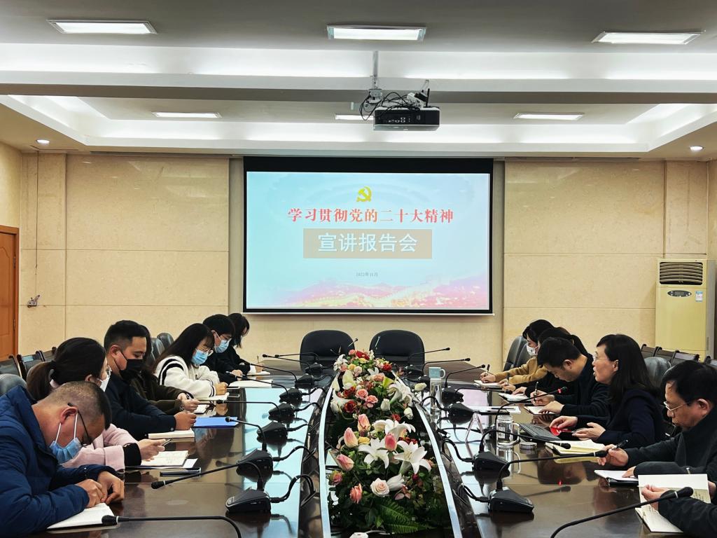 为深入学习宣传贯彻党的二十大精神,把全校师生员工的思想统一到党的二十大精神上来。11月23日,副校长邓杰为五分团机关支部成员作学习贯彻党的二十大精神宣讲报告。