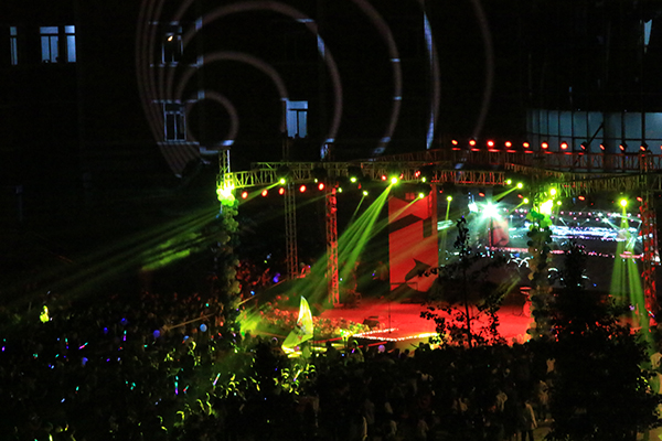本届摇滚音乐节还邀请了重庆师范大学、绵阳师范学院、四川旅游学院、川南幼儿师范高等专科学校的校园乐队及达州青年原创乐队同台演出。四川旅游学院“行者”乐队在大家的高声欢呼下,闪亮登场,主唱率性洒脱的演唱与吉他手、键盘手、鼓手的精彩演奏完美结合,在演唱《春风十里》、《公路之歌》两首歌曲后就已经征服了全场的观众,博得了场下一阵热烈的掌声,现场气氛高涨。绵阳师院“黑石头”乐队带来的民谣《鼓楼》、《乌兰巴托的夜》,掀起现场第一个高潮。神秘嘉宾歌手马丁出场,让现场高潮持续。“半糖”乐队、“重机车”乐队、“扑风”乐队(川南幼专)“不可抗力”乐队(重庆师大)等共11支乐队轮番上阵,掀起一股又一股摇滚热潮。乐队们演奏的音乐时而舒缓,像小溪轻柔地在心间流淌,当观众沉醉于这温柔的音乐中时,节奏忽然变得狂野,像脱缰的烈马,直闯观众内心,带去强烈的冲击,使观众也跟着这急促高亢的节奏“燃”了起来,跟着乐声一起摇摆。期间,观众还通过微信参与现场互动,进行现场抽奖,观众热情更加高涨。我校“康复医院”乐队压轴出场,以热情狂野的摇滚风将现场气氛推向新的高潮。