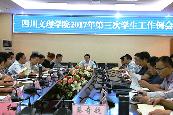 四川文理学院2017年第三次学生工作例会于9月5日上午在行政楼四楼会议室召开,党委副书记侯忠明主持会议。