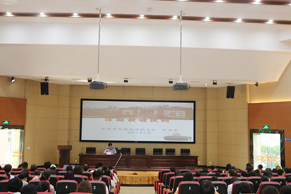 6月2日上午,“预防和减少青少年上当受骗或违法犯罪”讲座在莲湖校区学术报告厅举行,达州市公安局法制支队副支队长(主持工作)杜亚卓警督应邀为青年大学生作报告。