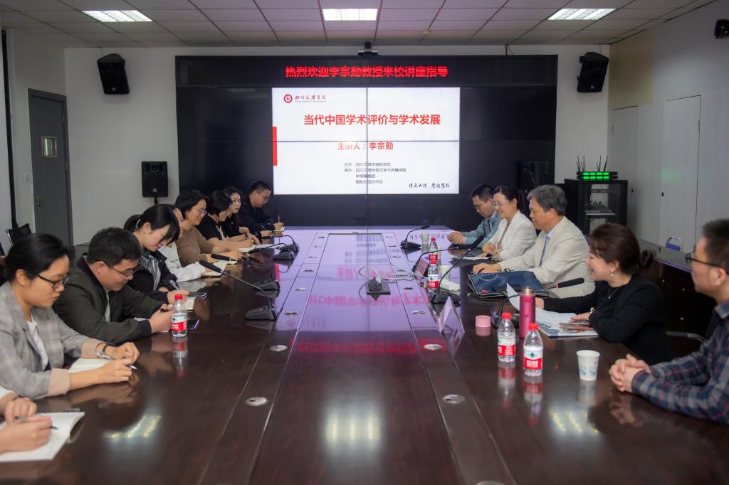 李宗勋教授还就“当代中国学术评价与学术发展”这一话题与学校部分老师进行座谈交流,主要围绕科研论文写作与投稿中的注意事项、教师搞科研的误区等几个方面展开,就科学研究、高质量文章撰写给与指导,李教授还与我校学报编辑部就期刊发展、学术评价等内容进行了深入交流。