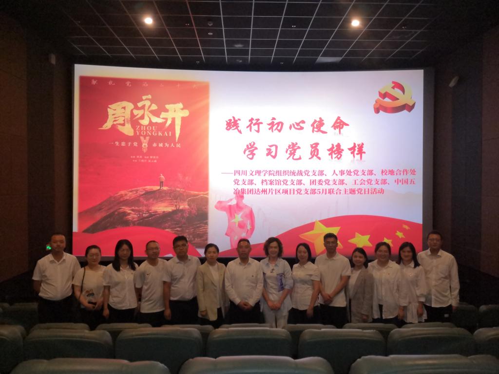 全体党员同志一行来到东区建设项目食堂、综合教学大楼、学生宿舍施工现场实地参观了解建设项目进展情况,认真听取了中国五冶集团四川文理学院东区建设项目负责人何长林详细情况介绍,并在东区建设指挥部会议室围绕主题教育学习内容、东区建设情况、学校2023年党建工作和全面从严治党会议精神进行了座谈交流。随后全体党员统一前往仁和新城电影院集中观看了“七一勋章”获得者、全国优秀共产党员周永开为原型摄制的主题电影《周永开》。