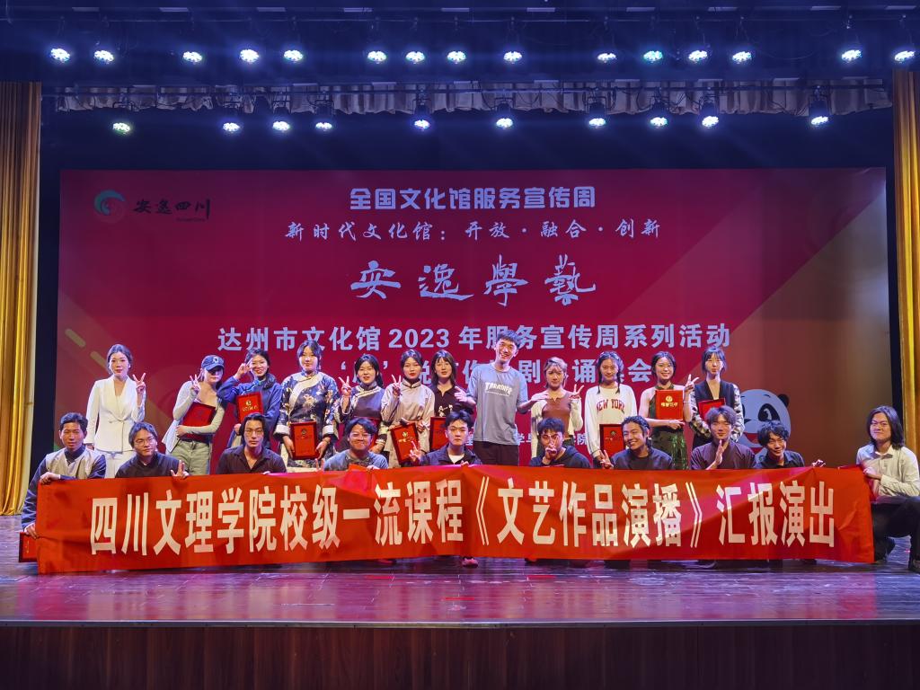 为进一步加强校地合作,5月22日,文学与传播学院与达州市文化馆联合举办的“安逸学艺”——达州市文化馆2023年服务宣传周系列活动“‘剧’说有你”剧本诵读会、四川文理学院校级一流课程《文艺作品演播》汇报在巴山大剧院成功演出。