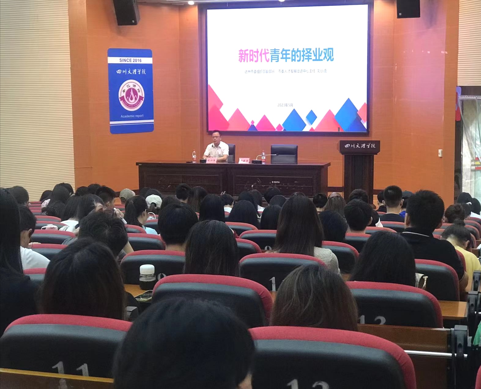 5月30日,达州市委组织部副部长、人才发展促进中心主任刘小流应邀来我校做题为“新时代青年的择业观”就业专题讲座。讲座由副校长徐晓宗主持。