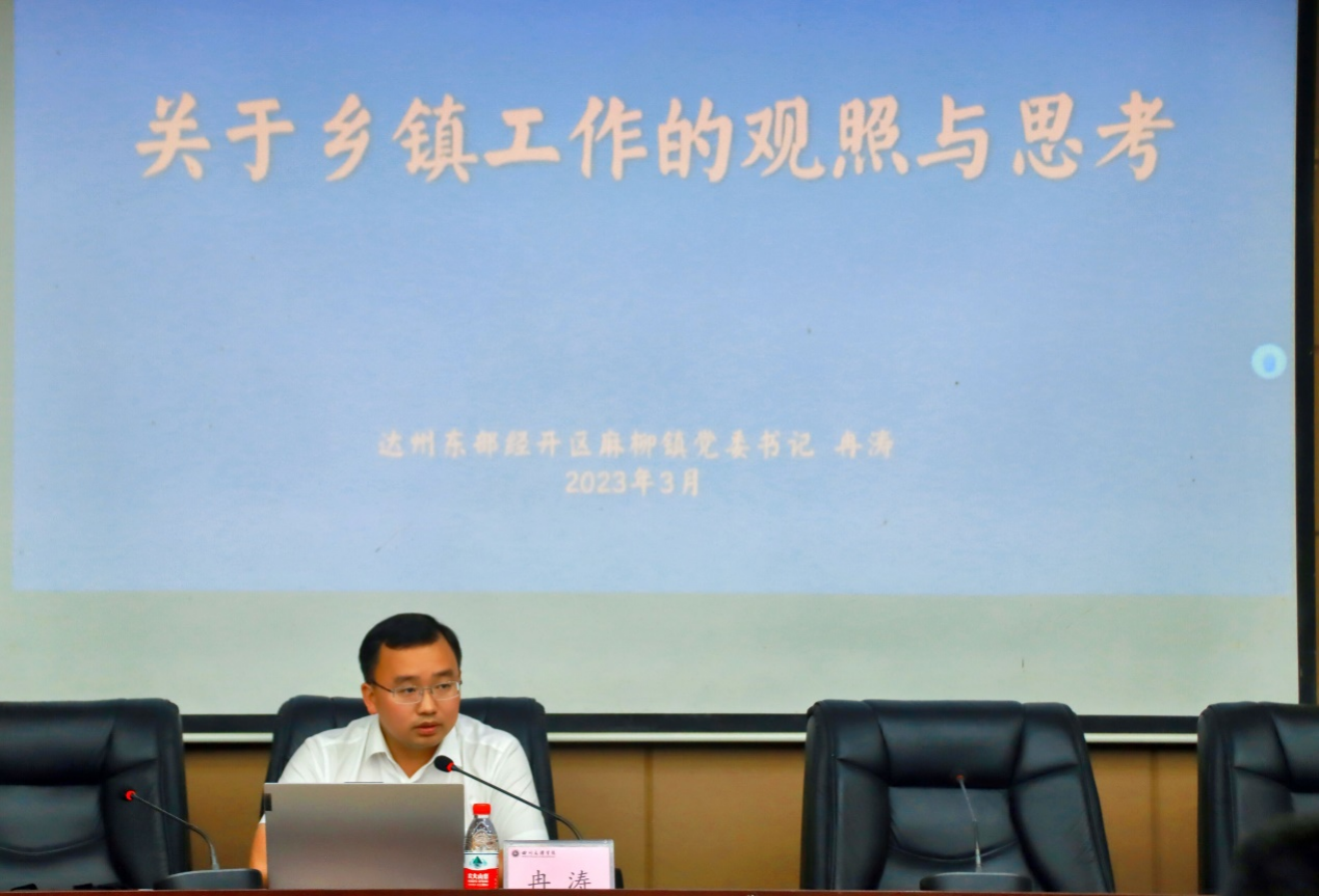 7月1日,校友达州东部经开区麻柳镇党委书记冉涛应邀回母校为第十三期“青马学员”做“关于乡镇工作的观照与思考”主题讲座。讲座由校团委书记成华军主持。