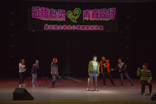 各支参赛队伍围绕校园情感冲突、心理危机、自我认识、生命教育等问题,以身边的真实故事为基础,演绎了大学生心理矛盾冲突的产生、发展、调整、解决的完整过程,融合了亲情、友情与爱情,引发了在场同学的共鸣与思考。比赛中,贴近生活的剧情、同学们生动有趣的表演,赢得了在场观众们的阵阵掌声。美术学院的作品《归》展示了大学生中存在的自卑、自尊心过强、缺乏感恩、功利、颓废等负面心理,通过一个感人肺腑的浪子回头故事,让观众们在同感中也得到了心灵的升华,最终凭借其完美的表演脱颖而出,摘得桂冠。