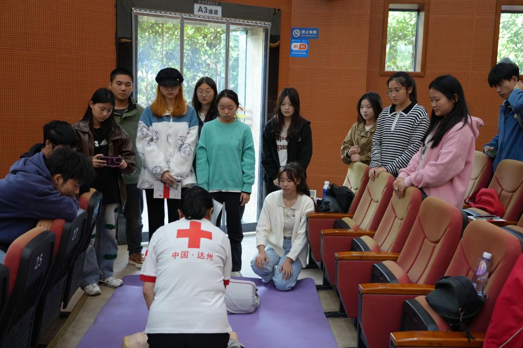 救护培训以线上理论学习+线下实际操作的方式进行。培训前,校医院积极联系达州市红十字会,邀请具有救护员培训资格的老师为学生培训。培训课上,老师系统地讲解了应急救护的基本知识,让参加培训的学生们了解应急救护的重要性和实用性。实训课上,老师在现场进行示范演练,现场气氛活跃,学员与老师们积极互动。在老师的指导下,学员们分组依次在仿真人体上演练了人工呼吸、心肺复苏技能、AED的正确使用、创伤救护等应急救护实操训练。
