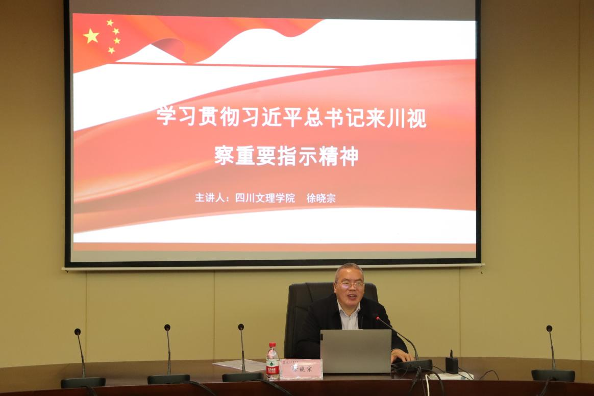 10月26日,在全校团员青年开展学习贯彻习近平新时代中国特色社会主义思想主题教育之际,第八期校史宣讲员培训开课。副校长徐晓宗教授为培训班开课并做题为“学习贯彻习近平总书记来川视察重要指示精神”的专题讲座。