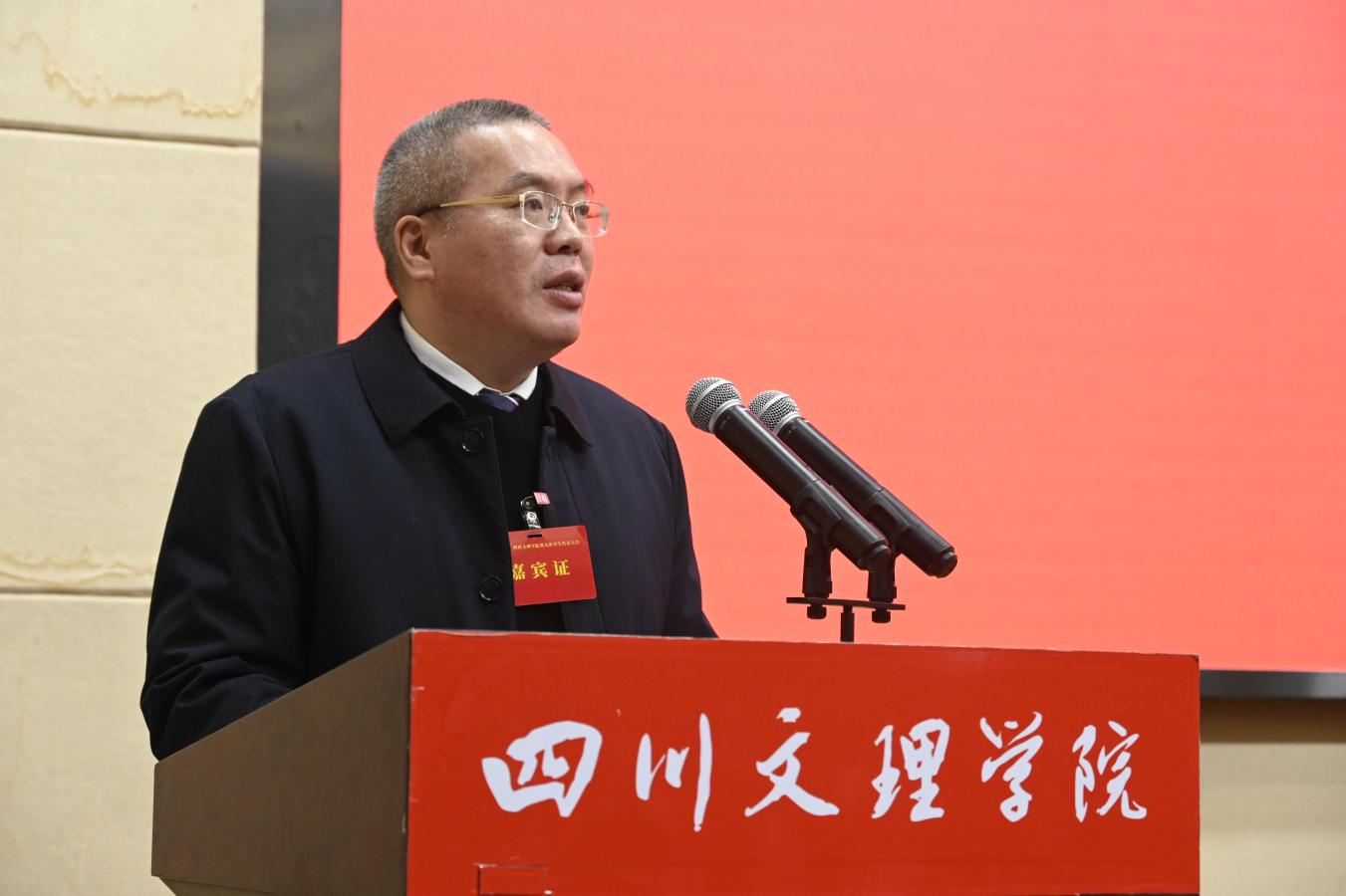 徐晓宗指出,为纪念“一二·九”运动88周年,我们在这里隆重召开四川文理学院第九次学生代表大会,既是为了缅怀革命前辈,重温革命传统,更是为了鼓励全校青年学生在新的历史条件下弘扬爱国精神,勇担时代重任。他说,自上一次学生代表大会召开以来,四川文理学院学生会围绕中心、服务大局,把牢思想引领根本任务,坚持学生主体地位,服务学生成长成才,展现出了新气象新风貌。站在新的起点上,全校学生会要坚持深入贯彻习近平总书记关于青年工作的重要思想,坚定政治方向、聚焦服务同学、凸显大局贡献,在担当中历练,在奋进中成长。希望全体学生代表把牢政治本色,引领文理青年,引导广大青年学生与时代同步伐、与人民共命运,深刻领悟“两个确立”的决定性意义,增强“四个意识”,坚定“四个自信”,做到“两个维护”,努力成长为有理想、敢担当、能吃苦、肯奋斗的新时代好青年;增长知识才干,服务文理青年,勤学奋进,立德修身,践行学校“博文大理,厚德笃行”的校训,传承“艰难困苦,玉汝于成”的精神,牢固树立事业靠本领成就、梦想从学习开始的观念,练就过硬本领,践行服务宗旨,聚焦同学们普遍性需求,着力发挥学联学生会在组织育人、实践育人、文化育人等方面的优势和作用,促进广大同学德智体美劳全面发展;坚持深入群众,凝聚文理青年,真心实意地走进同学,和同学面对面、心贴心,发挥好学校联系学生的桥梁纽带作用,团结引导广大学生自觉把个人理想融入到党和人民的共同奋斗之中。