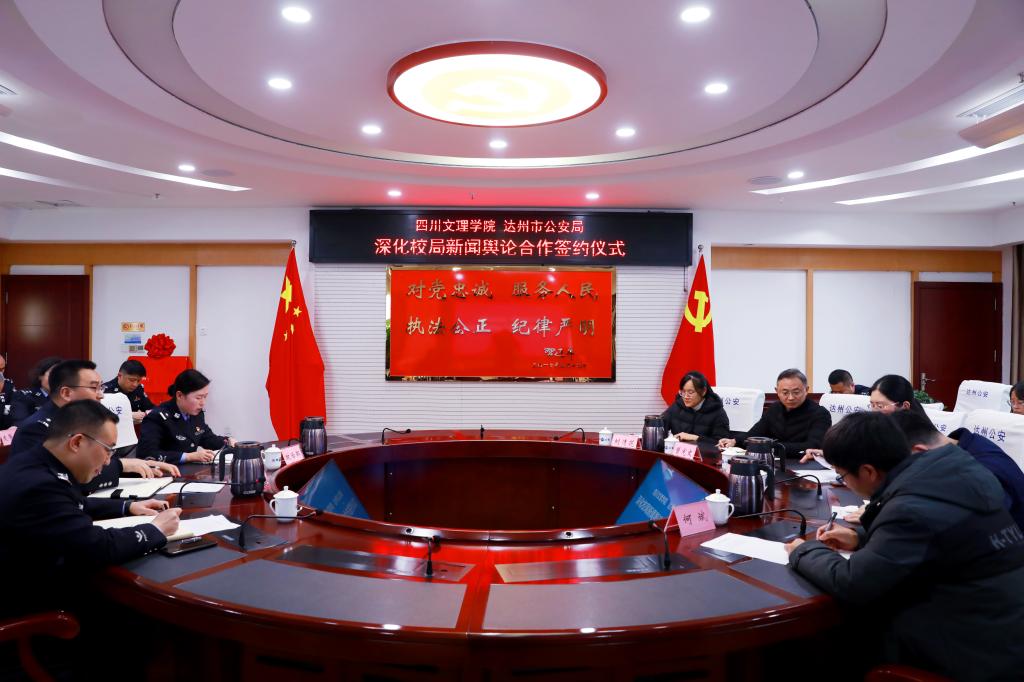 为进一步落实《四川文理学院-达州市公安局战略合作框架协议》的相关精神,促进产学研协同创新,12月14日下午,学院与达州市公安局在公安局党委会议室举行深化校局新闻舆论合作签约仪式。副校长程碧英、达州市公安局党委委员、政治部主任贾人全等出席签约仪式。