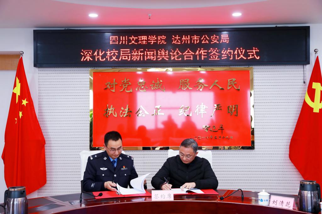 随后,四川文理学院文学与传播学院院长曾宪文与达州市公安局政治部主任贾人全分别代表双方签署合作协议。