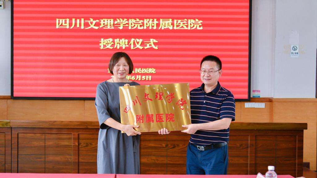为进一步推动医教协同、医教融合,提高医学人才培养质量。6月5日,四川文理学院附属医院授牌仪式暨座谈会分别在宣汉县人民医院、宣汉县中医院举行。康养产业学院、医学院党委书记彭时敏、宣汉县人民医院党委书记王晓飞、院长冉启军、宣汉县中医院党委书记杨辉、院长冯春念分别出席仪式,参加座谈会。