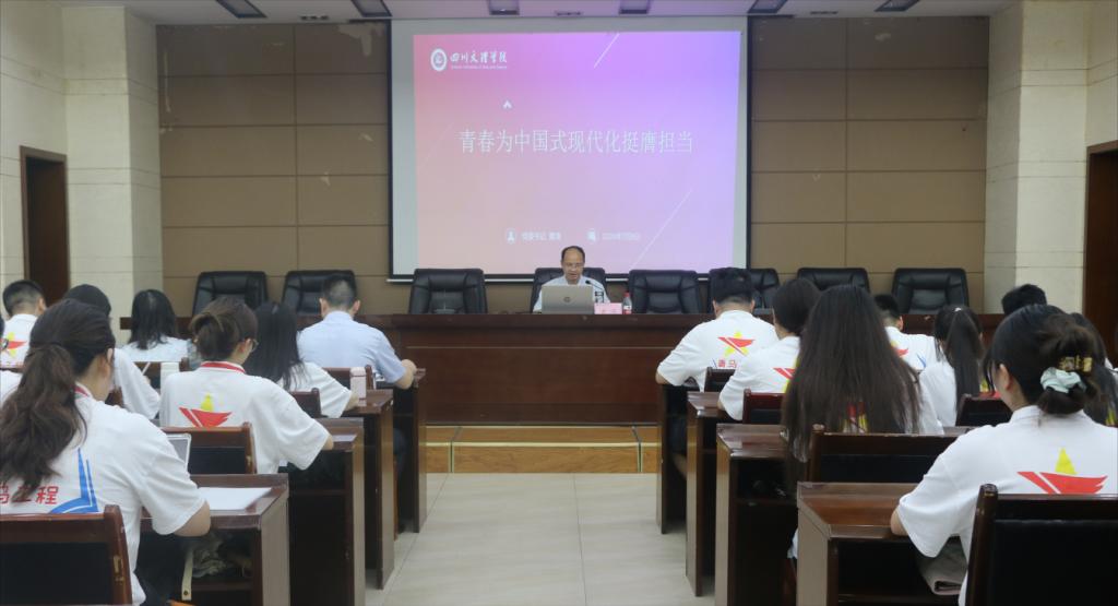 党委书记黄涛教授围绕“青春为中国式现代化挺膺担当”这一主题,从“深刻理解中国式现代化的核心要义、全面把握中国式现代化的实践指引、努力探寻文理青年成长的实践路径、争做新时代青年马克思主义者”四个方面交流分享,并就中国式现代化四川何为、四川文理学院何为、青年何为等问题作了解读和介绍。