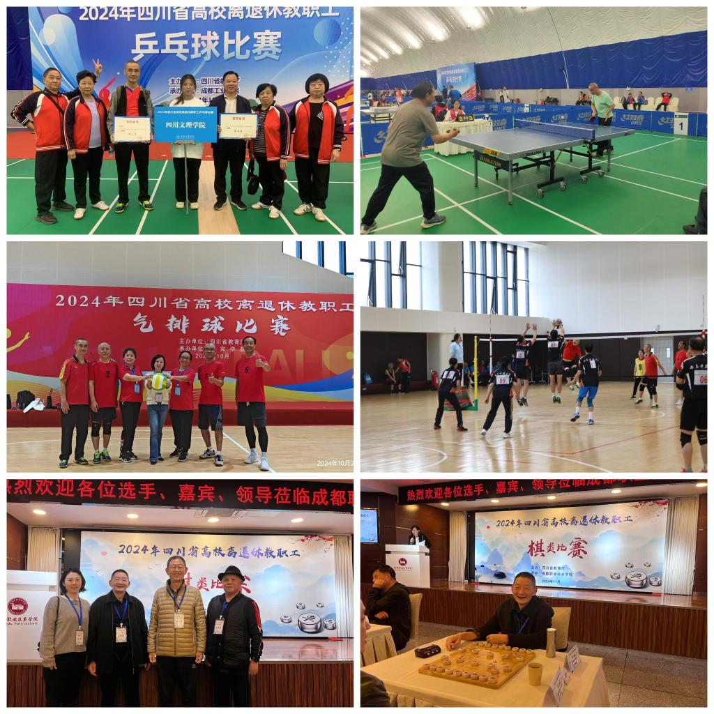 2024年全省高等学校老年文体活动于10月至11月陆续开展。我校14名退休教师分别参加了气排球比赛、乒乓球比赛、棋类比赛并获佳绩。