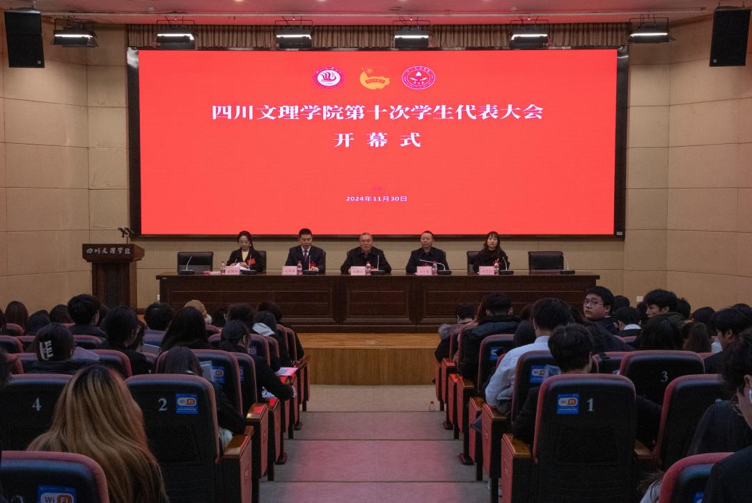 11月30日,四川文理学院第十次学生代表大会在莲湖校区召开。学校党委副书记徐晓宗出席大会并讲话,党委学生工作部部长、学生处处长王小奎致辞,团委书记成华军主持开幕式。各二级学院学生代表大会选举产生的240名学生代表、各代表团团长、副团长、留学生特邀代表、列席代表等参加开幕式。
