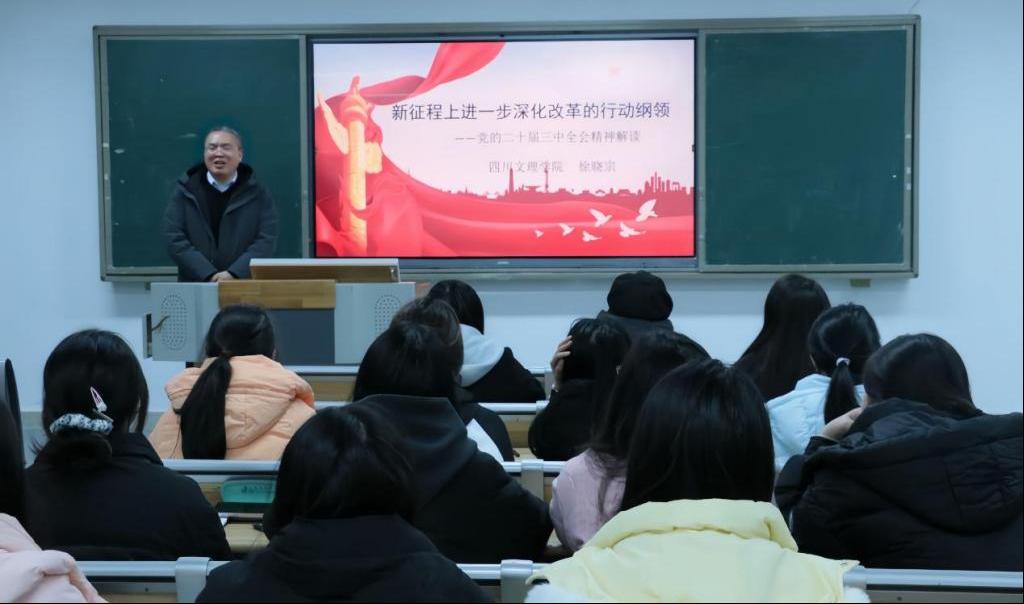 近日,党委副书记徐晓宗以《新征程上进一步深化改革的行动纲领——党的二十届三中全会精神解读》为题,为政法学院知识产权学院师生讲授思政课。