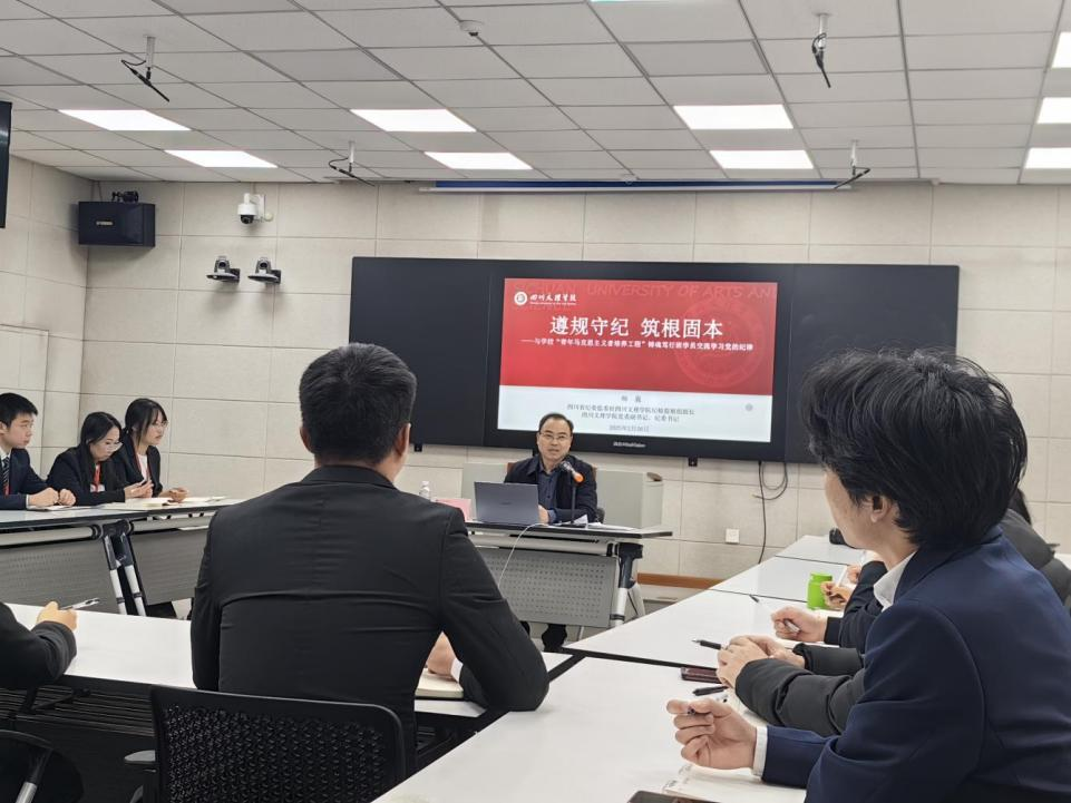 近日,省纪委监委驻四川文理学院纪检监察组组长、党委副书记、纪委书记帅胤走进第十四期“青马工程”铸魂笃行班课堂,以“遵规守纪筑根固本”为题给青马学员讲授思政课。