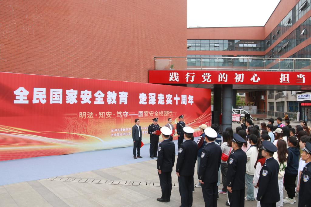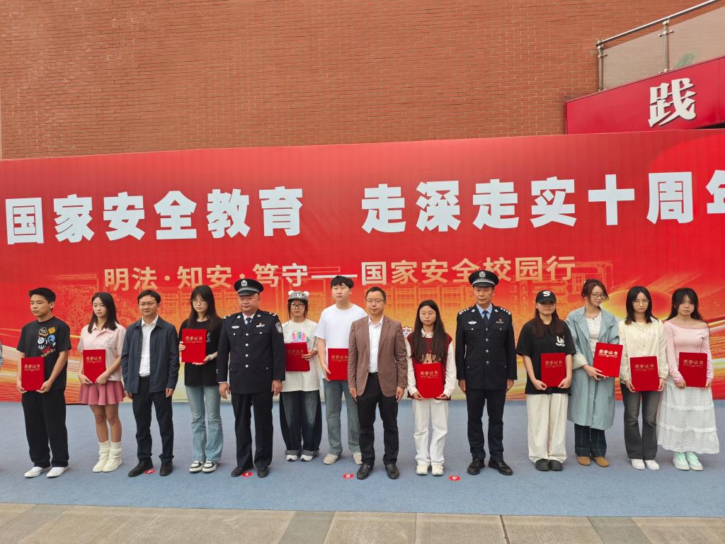 校警联动共筑安全防线。4月15日上午,“校警共建护国安”宣传暨2025年大学生国家安全素养展示获奖作品颁奖仪式在艺术传媒大楼广场隆重举行。仪式由副校长陈光平主持,市公安局副局长沈晓,市委办副主任宿都,市公安局政保支队支队长谭清福,达州市公安局宣传科、达州日报、自媒体、电视台等媒体代表、相关业务警种民警代表以及我校部分师生代表出席活动。