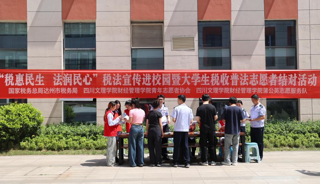 结对传税语,赋能促发展。此次税法宣传活动是财经管理学院与地方的有益联动,不仅拓宽了大学生的知识视野,更强化了他们的诚信纳税意识与法治观念,也为居民带去了实操指导。未来,财经管理学院将持续携手达州市税务局,不断创新宣传形式,推动税法知识走深校园和社区,为构建税收法治环境贡献更多力量。