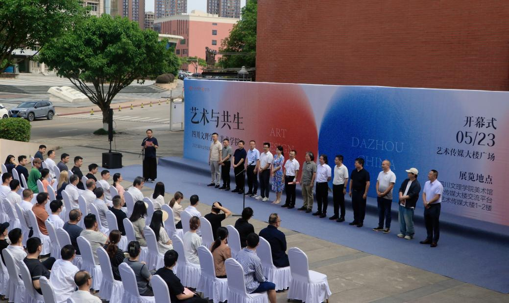 5月23日,“艺术与共生”—— 四川文理学院美术学院 2025 届毕业作品展暨市校合作美术、设计人才推介会在艺术传媒大楼广场盛大开幕。